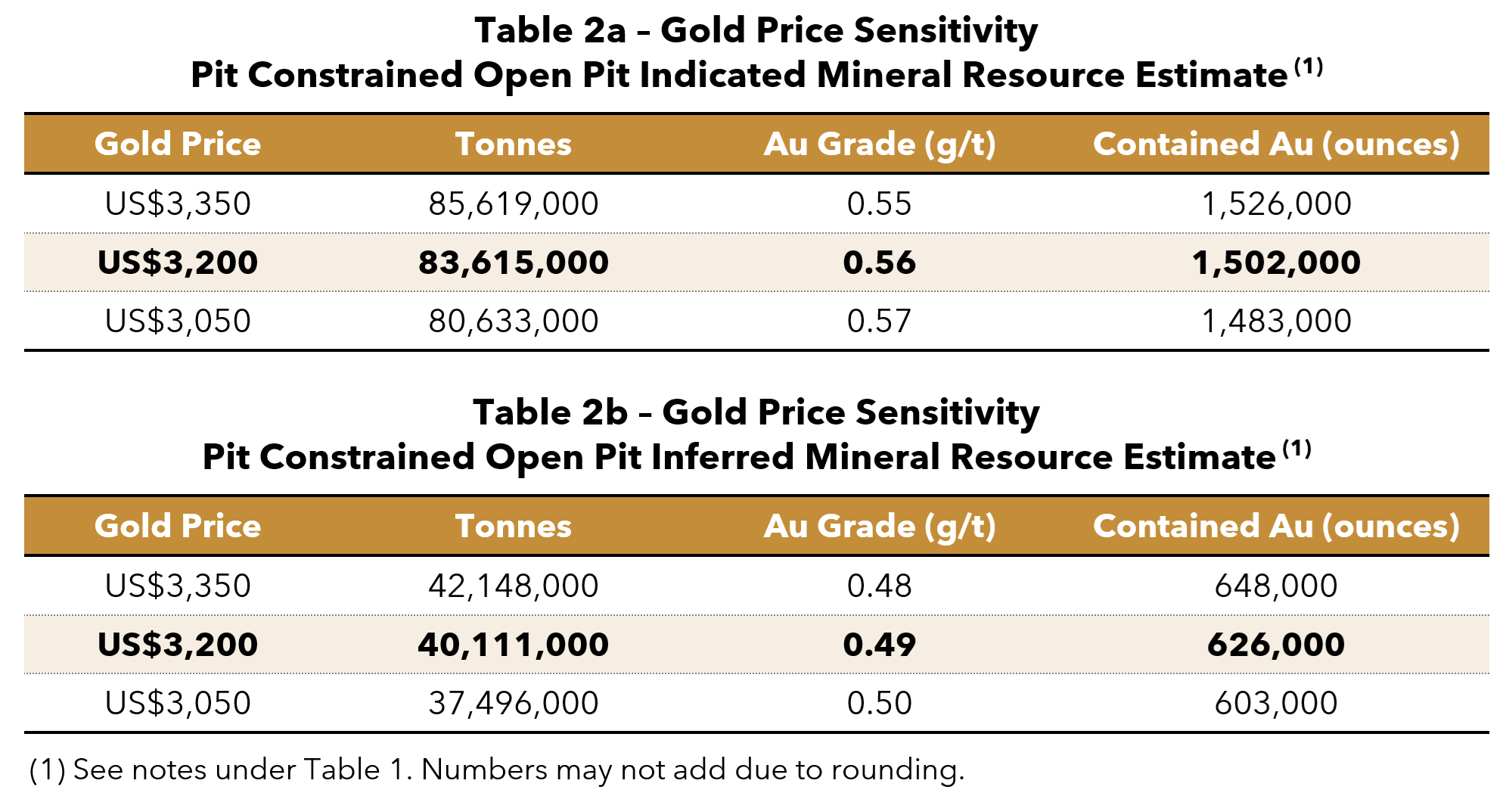 • Additional Inferred Mineral Resource of 626,000 Ounces Gold.