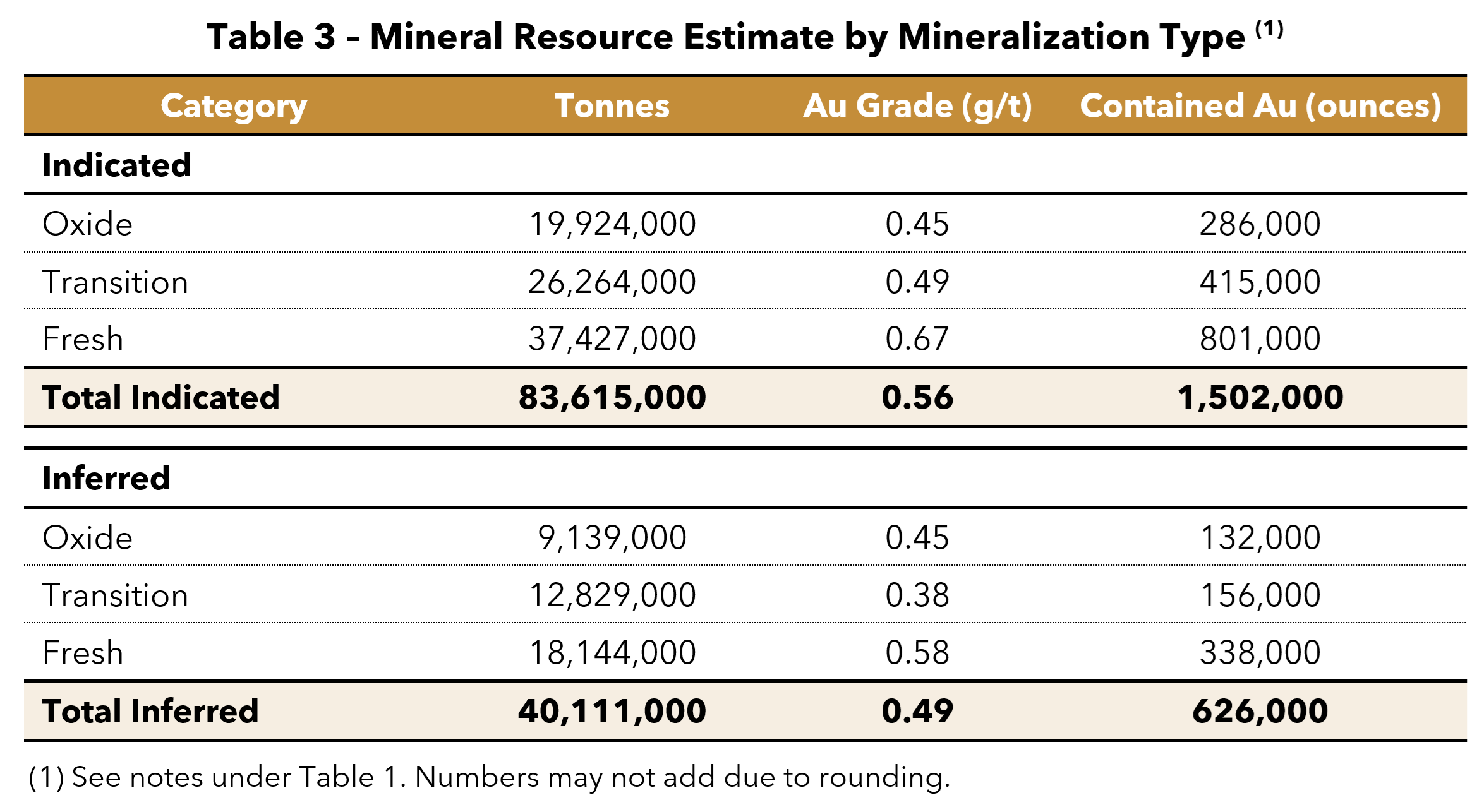1,502,000 Indicated and 626,000 Inferred Gold Ounces;